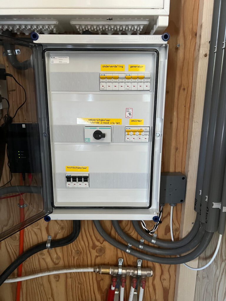 Wat sluiten we hier nu eigenlijk allemaal op aan? Nou, gewoon, uw gehele woonhuis, of bedrijfspand. En dan wel zo, dat een stroomuitval niet opgemerkt wordt. Ons systeem is voorzien van zonnepanelen, een omvormer, accu’s, en een generator. Terug leveren niet meer wenselijk? Geen probleem, we stellen de omvormer in op Zero-Export en de omvormer zorgt ervoor dat er geen terug levering plaats vindt.